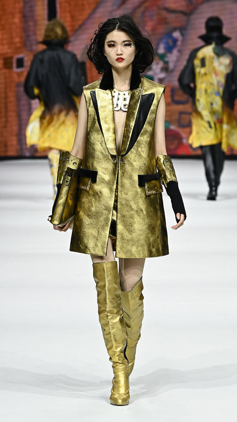 LIE SANGBONG's 23 Fall and Winter Collection marked a fashion transformation by seamlessly merging the artistry of Gustav Klimt with fashion, thanks to a collaboration with the Belvedere Museum in Austria. This collection skillfully incorporated the eroticism, vibrant colors, and intricate lines of Klimt's artworks into LIE SANGBONG's couture-style techniques and patterns. The outcome was a captivating collection that celebrated artistic craftsmanship, blurring the boundaries between art and fashion.