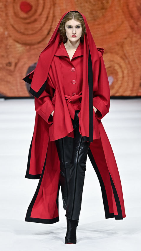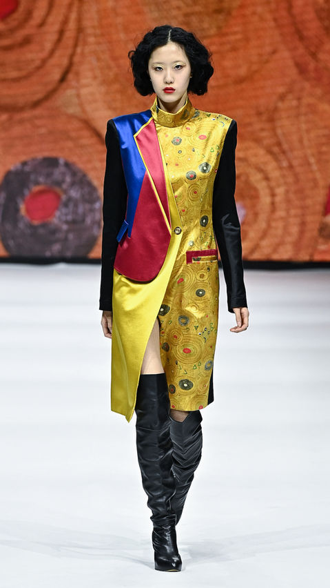 A collection that celebrates Dancheong in its many forms and expressions. It seamlessly blends the five vibrant colors of Korea into mesmerizing patterns, offering a modern interpretation of Dancheong and Korean architectural motifs through innovative geometric designs and avant-garde silhouettes.
